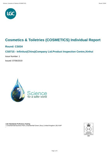 2019年6月,无限极新会生产基地产品检测中心(以下简称“新会产品检测中心”)参与的化妆品中的[pH、Viscosity(粘度)、Density(密度)]与食品中的[Lead(铅)、Arsenic(total)(总砷)、Cadmium(镉)]等 6个项目通过了英国LGC (Laboratory of the Government Chemist政府化学家实验室)国际能力验证,其中铅、砷项目的检测结果分别为0.032mg/kg、0.085mg/kg(即10亿分之32与85),通过低含量级别的能力验证说明新会产品检测中心在痕量分析领域的检测能力一如既往地保持着国际水平。