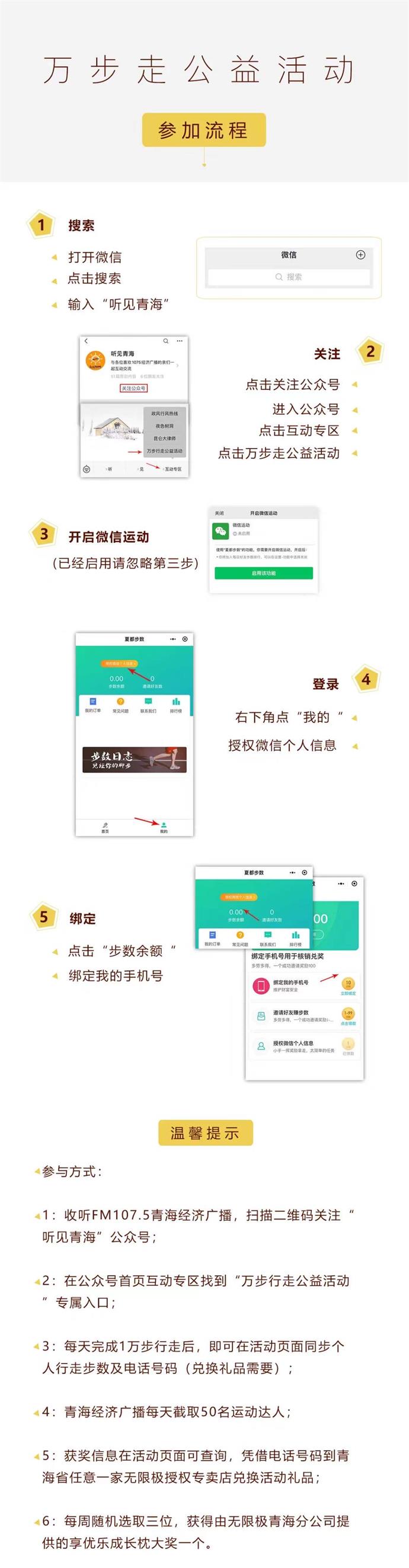 经历了疫情最严重的阶段后,全民对身体健康的重视程度明显提升。在此大环境下,为了响应避免人群聚集的政策号召,提升全民身体健康素质,青海广播电视台经济广播携手无限极(中国)有限公司青海分公司,推出倡导全民每天行走一万步的“线上万步行走”健康公益活动,旨在通过提高全民身体健康素质,强化全民健康意识。