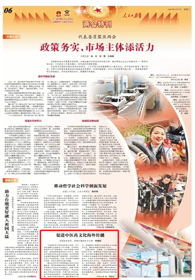 他建议,应着力促进中医药产业海外发展,鼓励、支持中医药及中药类保健食品出口,推动中医药人才及企业“走出去”,充分发挥华侨华人资源优势,引导及助力华商在海外发展中医药产业;着重加强政策法规、市场准入等方面的引导,帮助中医药企业适应国际化市场,打造有影响力的中医药品牌。充分利用中医药跨国企业文化传播优势,借用各类载体讲好中医药故事,将中医药文化与企业产品相结合,提高国外民众中医药产品认同感。同时通过尊重多元文化,积极探索中医药文化与各国本土文化融合方式,增进中医药文化的民心认同。