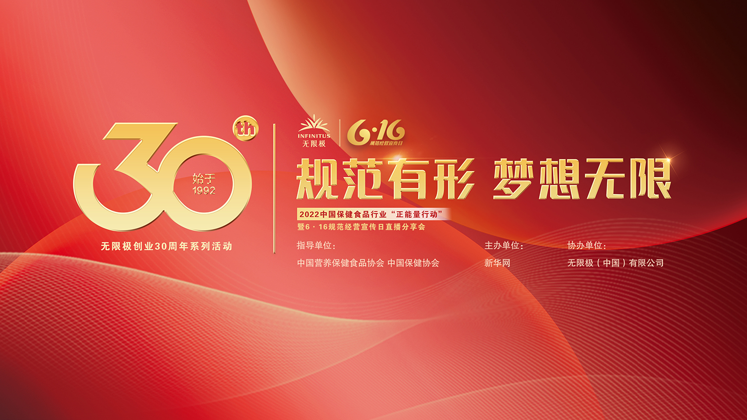 规范有形,梦想无限。今年“6·16无限极规范经营宣传日主题分享会”邀请行业权威专家与来自监管部门、协会、媒体、企业各界的大咖,共话保健食品行业规范经营之道。活动将在新华网全媒体平台同步直播,敬请期待。