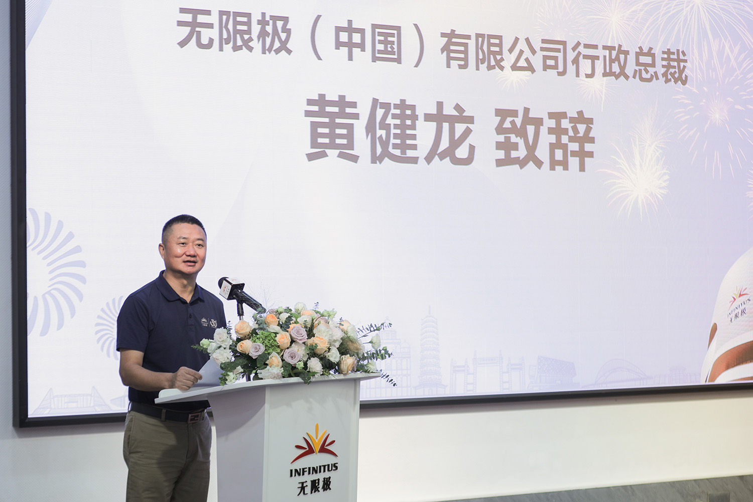 黄健龙先生致辞中首先感谢大家来到无限极新会生产基地,共同见证历程展的启动。他表示:“30年来,无限极始终坚持走一条‘难而正确’的路。在30周年之际,通过举办历程展,让大家重温创业之路,重燃创业激情,从历史中总结经验和教训,从而照亮未来的方向。”他又希望历程展能让大家更加直观、全面地了解无限极,增加彼此的沟通、理解与信任,助无限极更好地成长与发展。