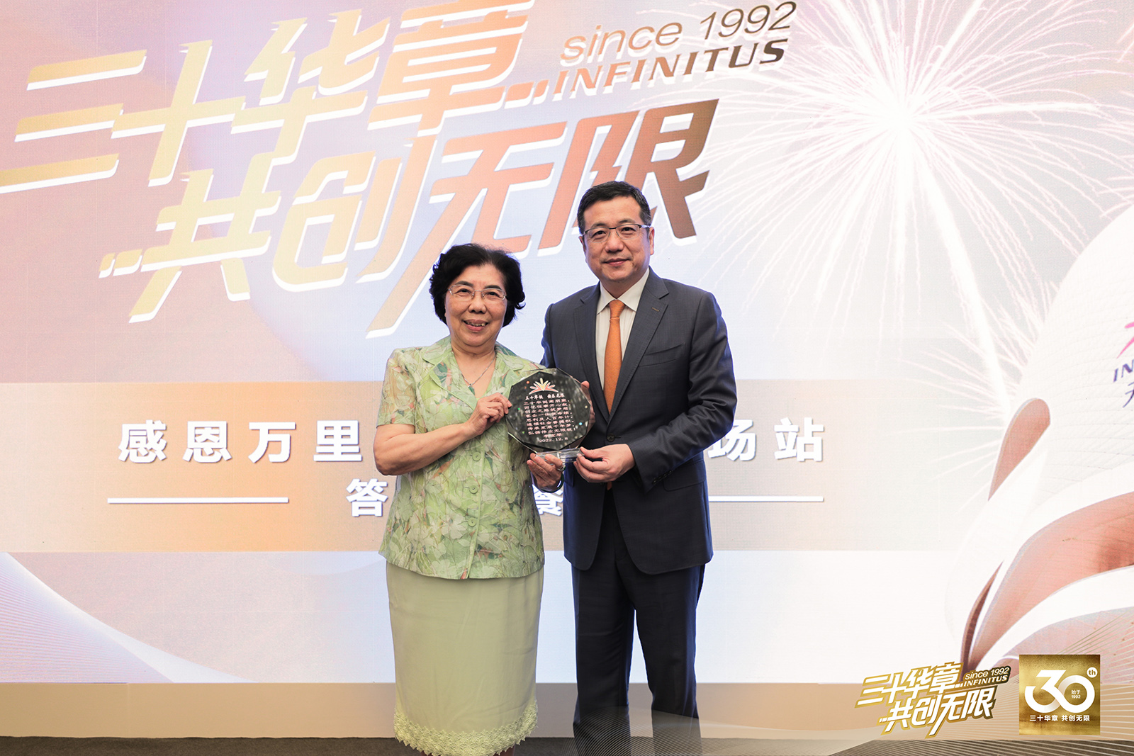 由于疫情关系,李锦记健康产品集团主席、无限极(中国)有限公司董事长李惠森先生没法亲身来到现场与老朋友相聚,特意录制了答谢视频为伙伴们送上最真挚的感谢。他表示:“过去30年,在座伙伴见证了无限极的发展历程,没有大家的共同努力,就没有今天的无限极,希望大家继续发挥永远创业的精神,去创造更多历史。”