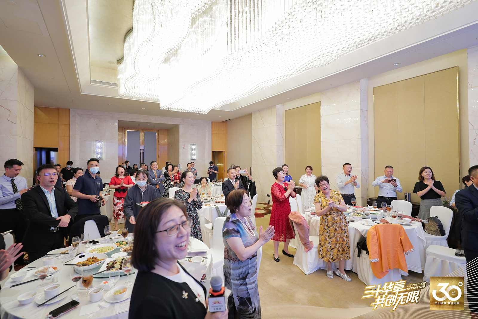 晚餐上,俞江林先生更即席为大家献唱歌曲《花开在眼前》,伙伴们在《感恩的心》的歌声中起舞,宾主共同举杯敬酒,继续畅谈,互相感恩,共贺三十华章,现场气氛热烈。