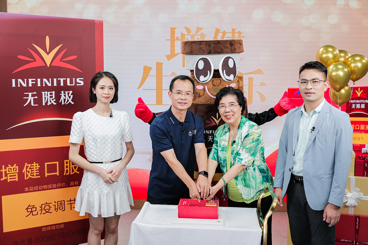 增健口服液作为本次明星产品大赏活动得票数最高的产品,自1994年8月8日问世以来,一直受到广大消费者的喜爱。2022年8月8日,它迎来自己28岁生日,为此“星品之夜”我们特别策划了一场生日派对,邀请到消费者代表李宝琴女士、郭少君先生一起为增健口服液庆祝生日。