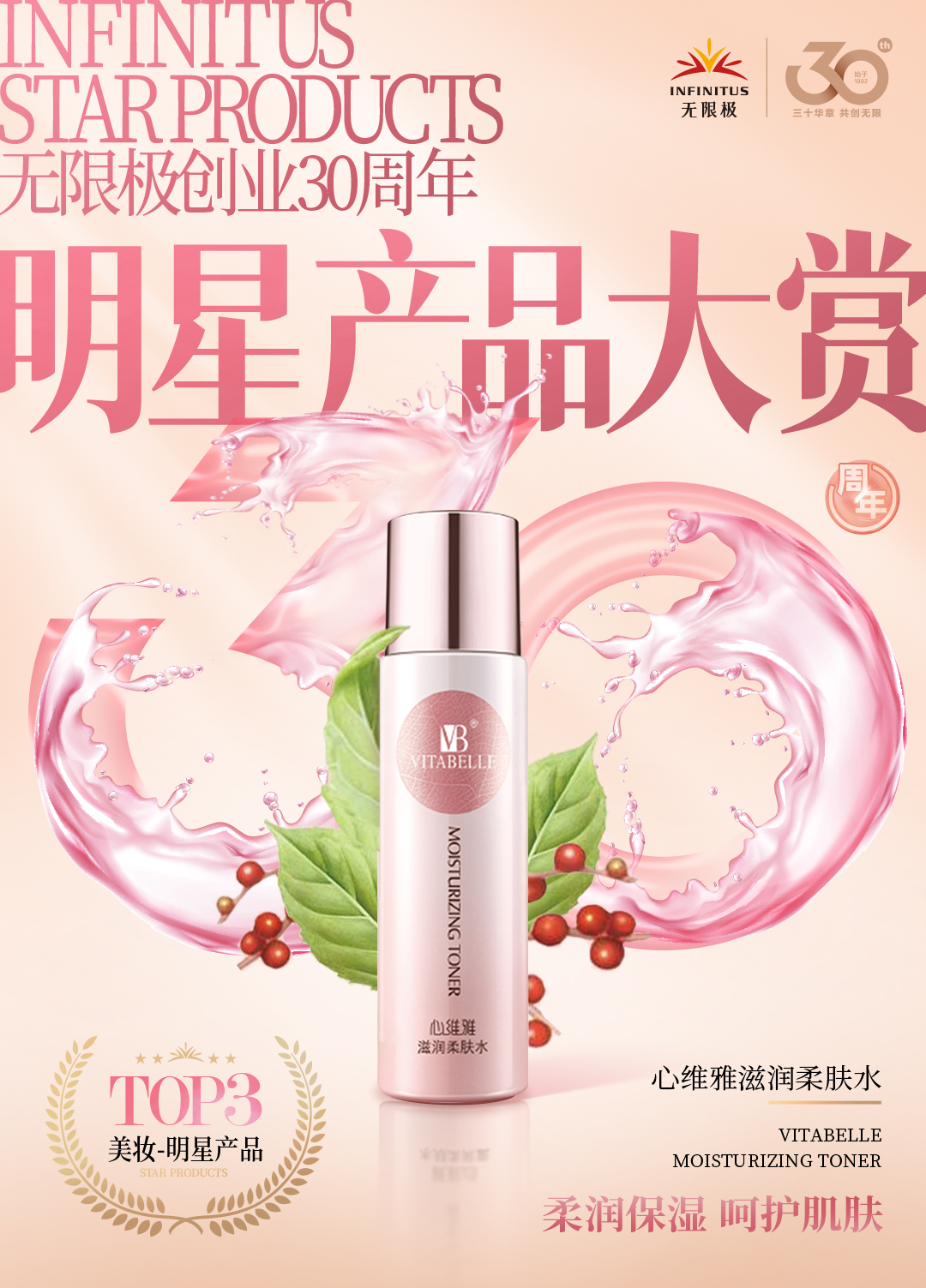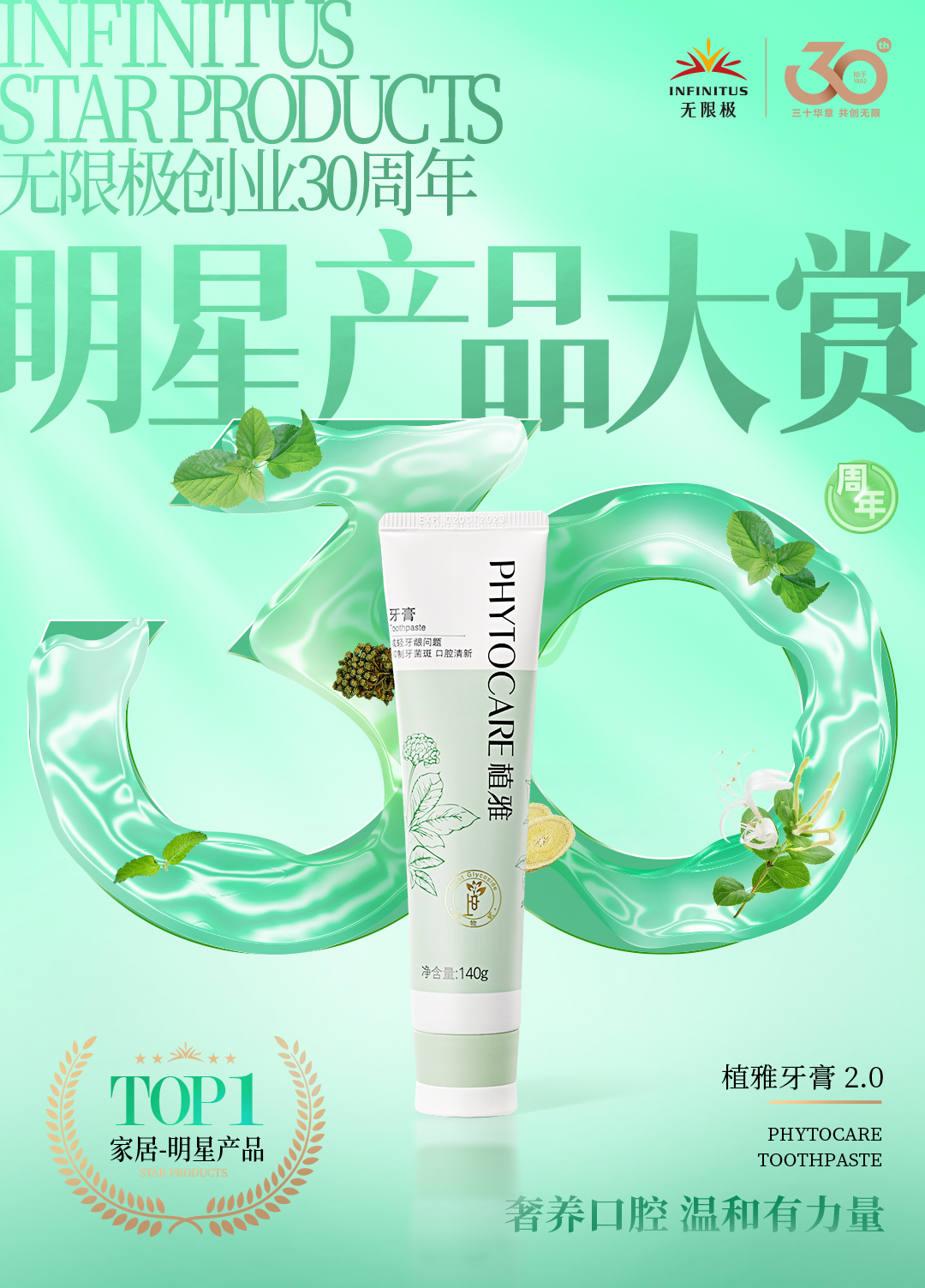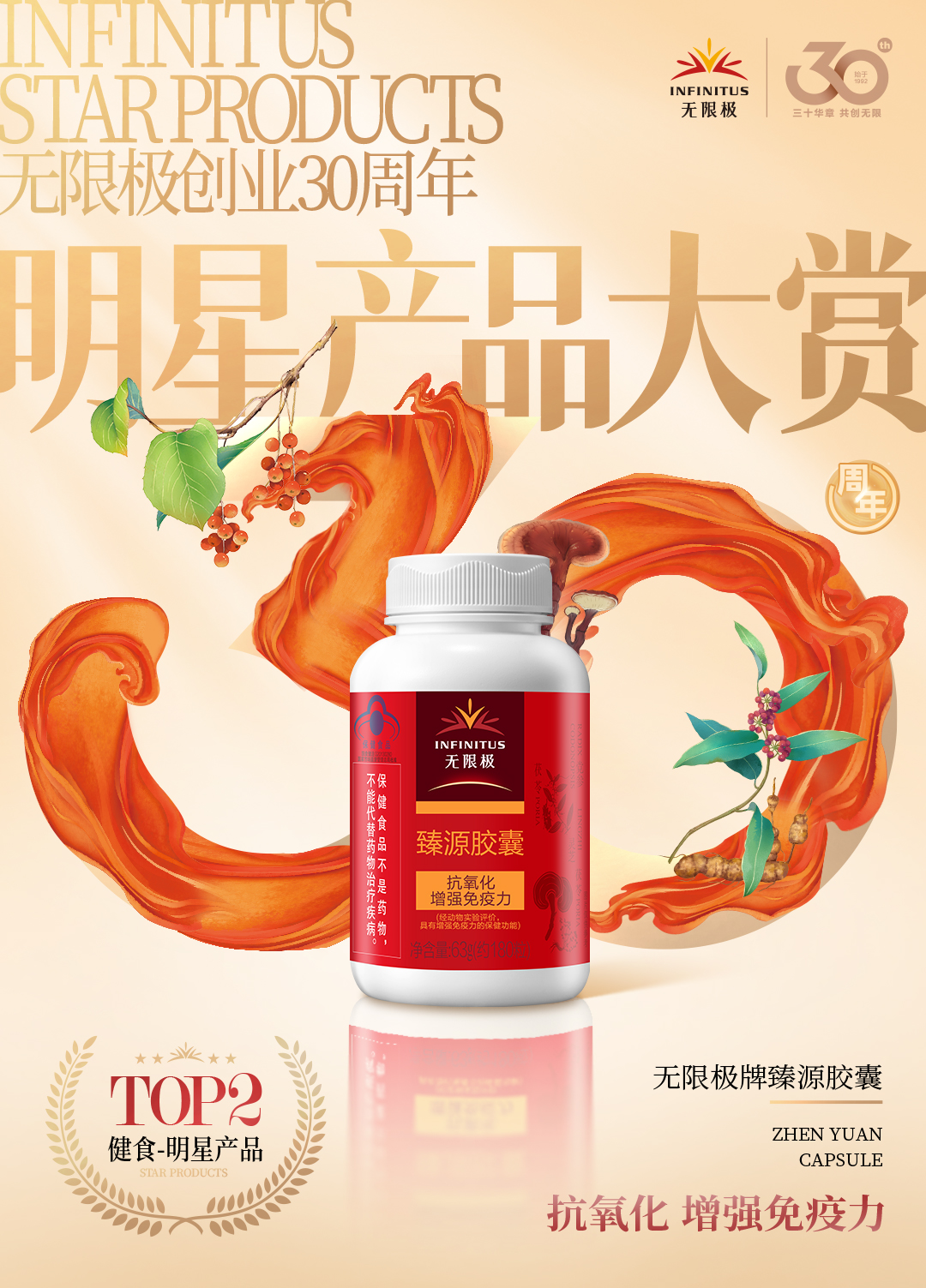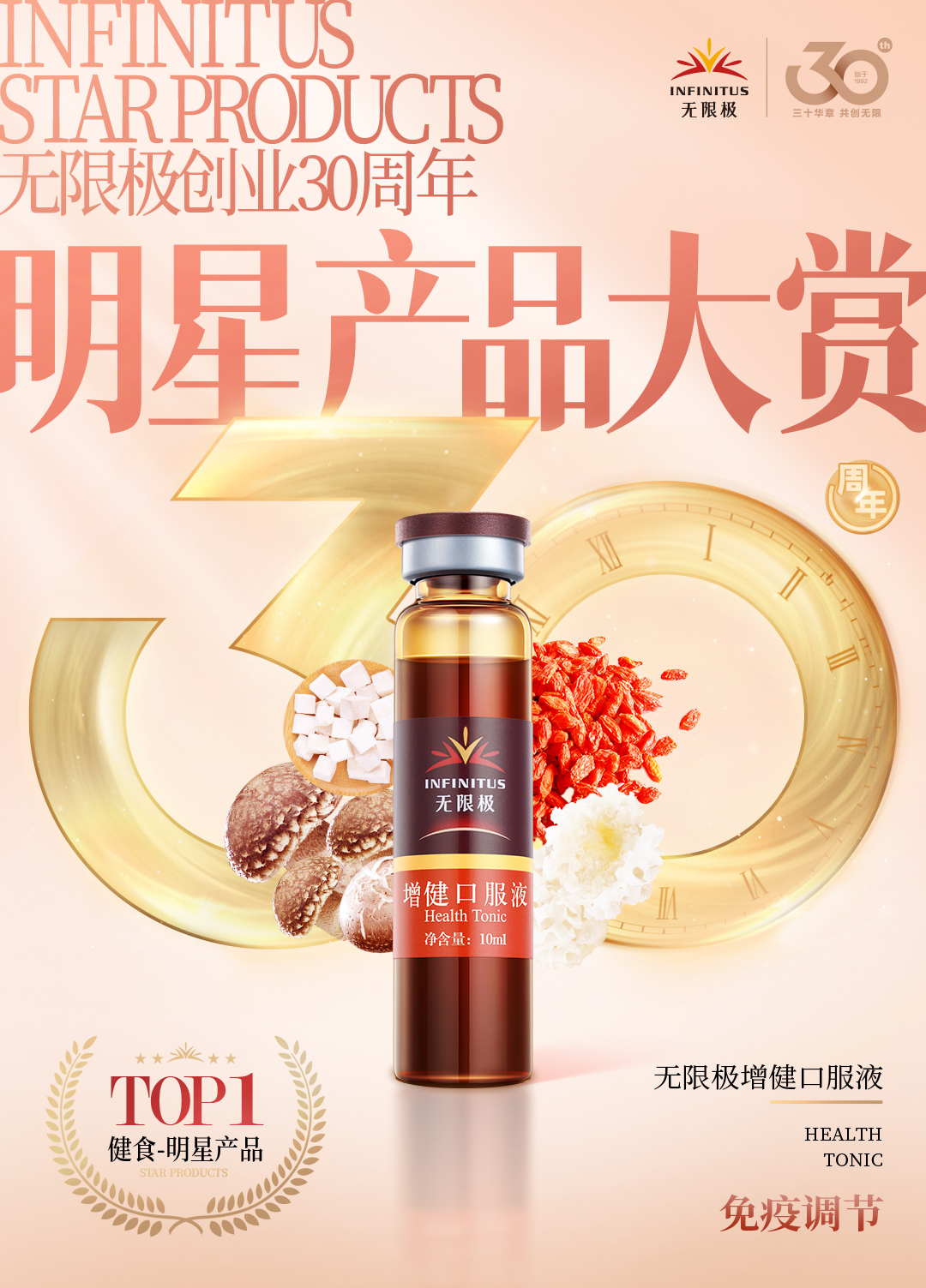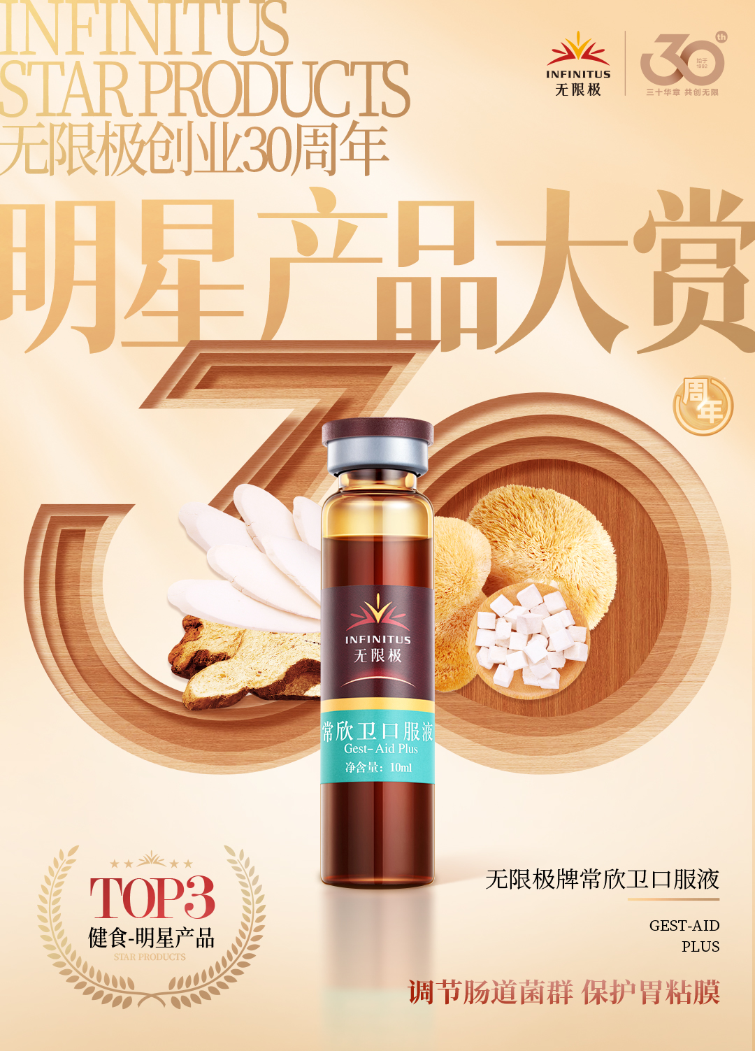 无限极创业30周年明星产品大赏自8月1日开放投票以来,短短几天,得到了广大消费者和业务伙伴的积极响应,累计12万人次浏览,近4万人投票。6日晚19:30,无限极创业30周年明星产品大赏“星品之夜”线上颁奖直播盛大举办,无限极12款明星产品正式揭晓!
