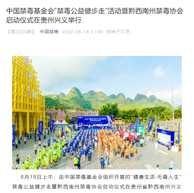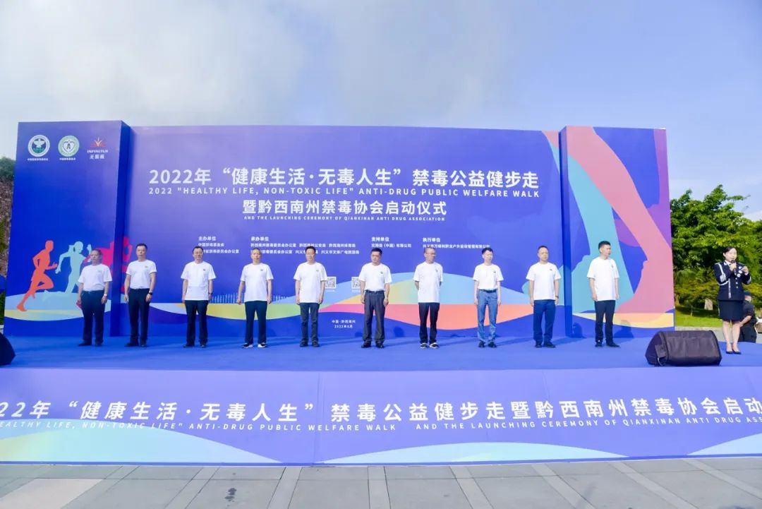 8月18日上午,由中国禁毒基金会组织开展的“健康生活·无毒人生”禁毒公益健步走暨黔西南州禁毒协会启动仪式在贵州省黔西南州兴义市万峰林西南广场举行。国家禁毒办副主任、中国禁毒基金会秘书长李宪辉,黔西南州人大副主任、州禁毒委副主任张谦,州政府副州长、州禁毒委副主任、州公安局局长李淞,州禁毒委副主任、州中级人民法院院长彭坤毅,无限极(中国)有限公司公共关系区域经理李春,贵州省公安厅禁毒总队副总队长赵登文等领导以及部分禁毒志愿者、学生、禁毒社工、社区干部、企业代表、民警、媒体记者等1000余人参加活动。