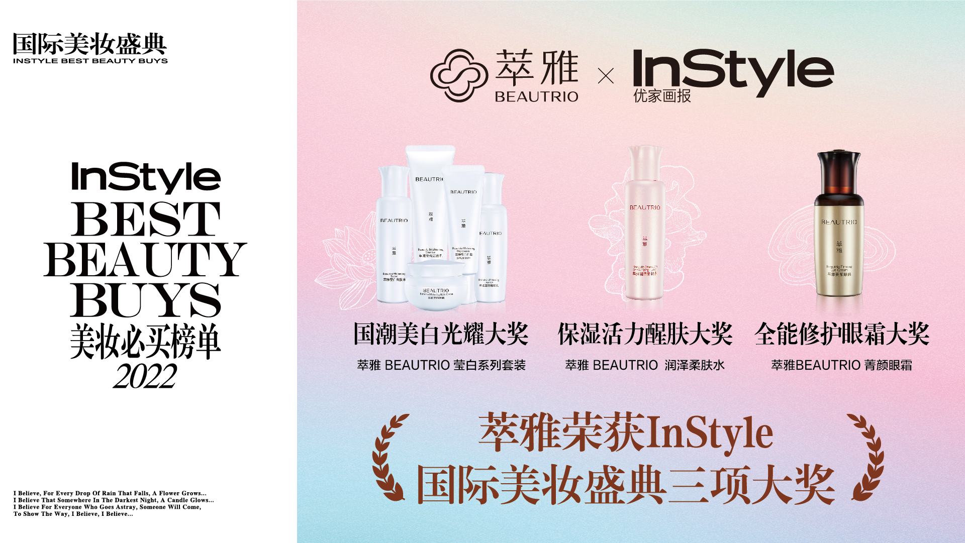 正如第五届InStyle 美妆盛典举办理念一样:我们永远是自我的主宰,每一秒都自信流露,恣意闪亮!未来,萃雅将不负殊荣,继续根植中华本草美肤智慧,打造更多美肤好物,让全球女性展现由内而外的闪耀!