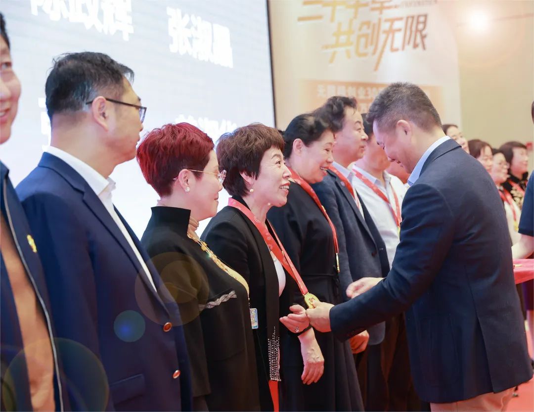 随后,嘉宾为公司长期合作伙伴颁发公司纪念胸章,对伙伴们多年来的坚持与付出表示感谢,陈立新女士、刘诗扬女士和伙伴们共忆创业历程,鼓舞伙伴笃定信念,奋勇拼搏。陈帅铭先生和岳春艳女士也纷纷讲述在无限极奋斗的心得和收获, 激励伙伴继续奋斗,共创美好未来。