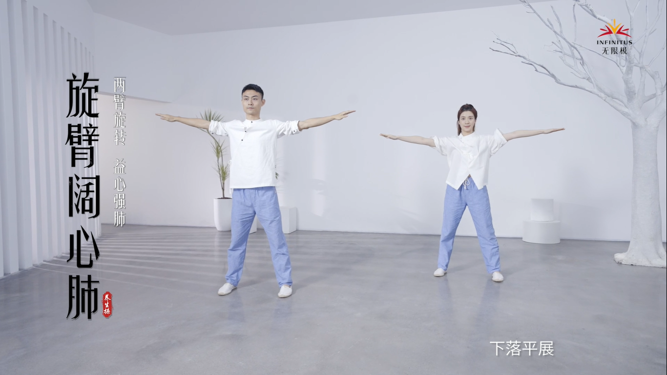 旋臂阔心肺:两臂旋转,益心强肺