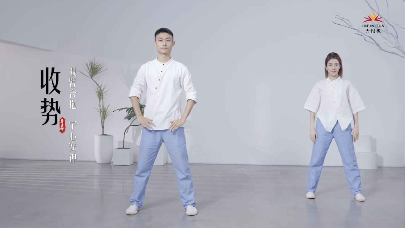 收势:双臂合抱,宁心安神