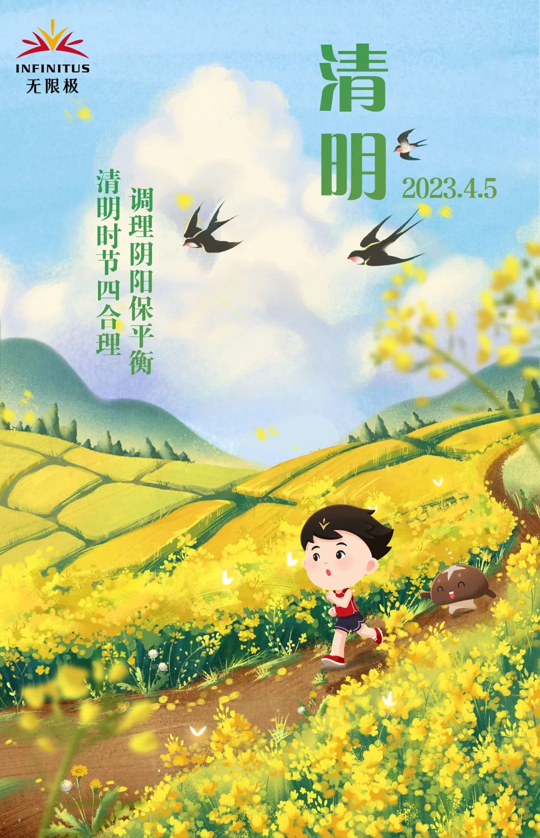 清明时节气清景明,清风徐徐,阴雨绵绵,多变的天气使得人体容易被风寒和湿气入侵,无限极健康养生理念建议您:清明时节四合理,调理阴阳保平衡。注意防“风邪”除“湿寒”。