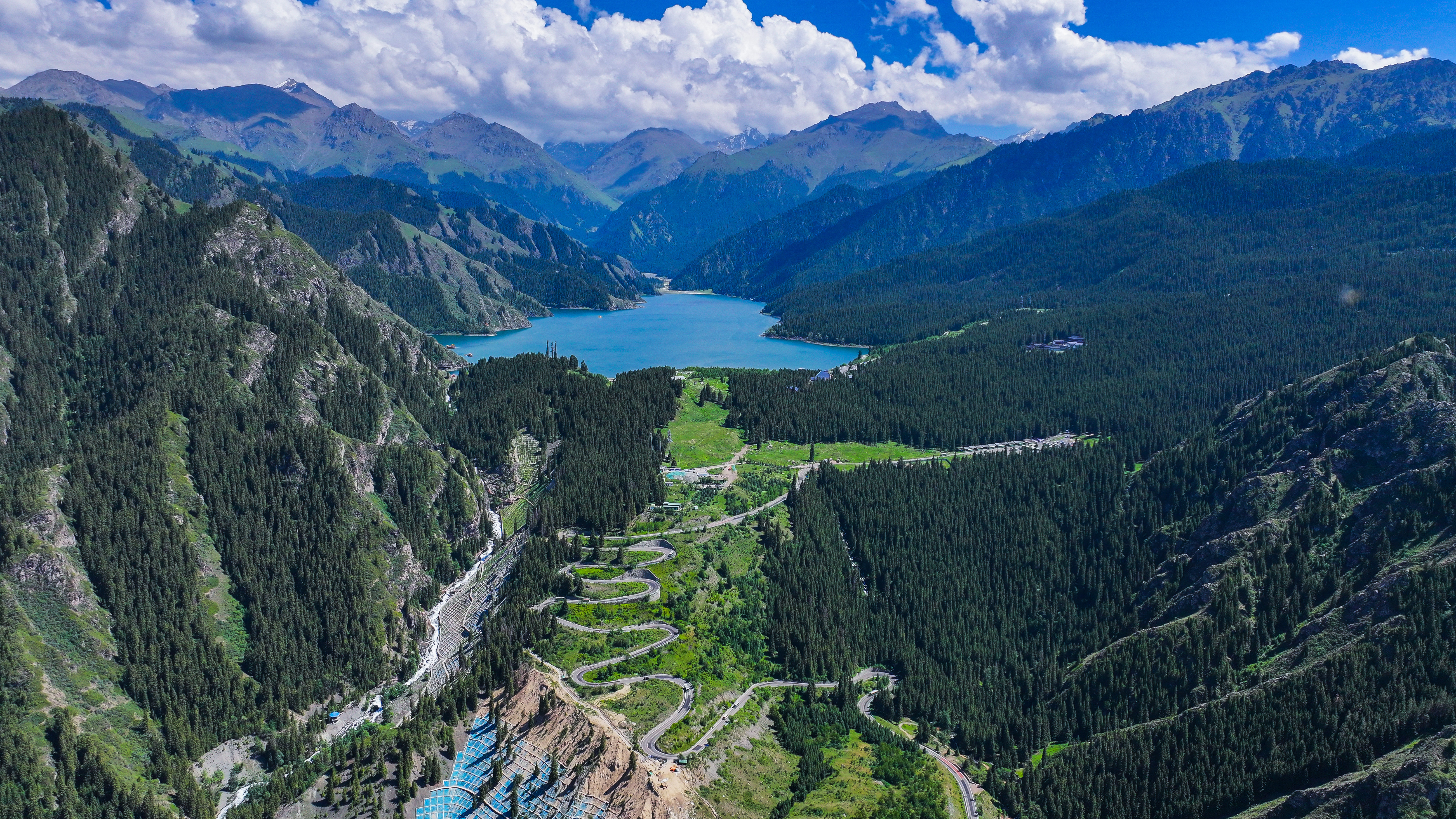 天山天池以高山湖泊为中心,雪峰倒映,云杉环拥,碧水似镜,风光如画,古称“瑶池”。即使是盛夏天气,湖周绿草如茵,繁花似锦,最为明艳。湖水的温度也相当低,乘游艇在湖面上行驶,一阵阵凉风吹来,创业合伙人的爽活人生尽在此刻。