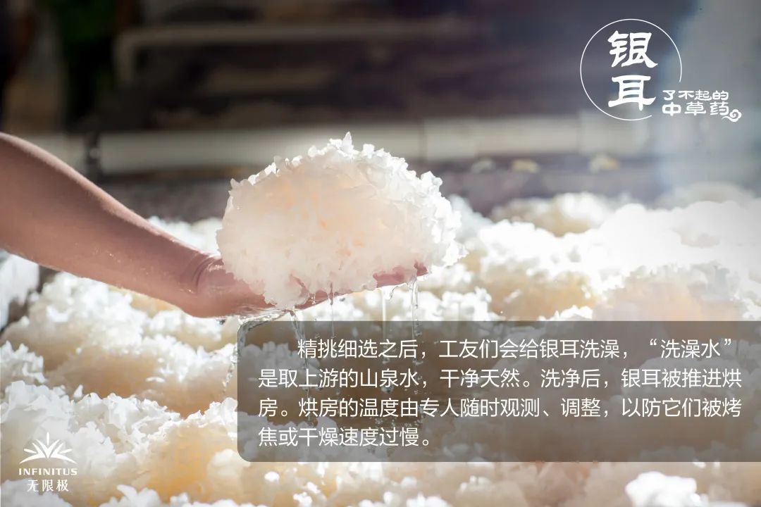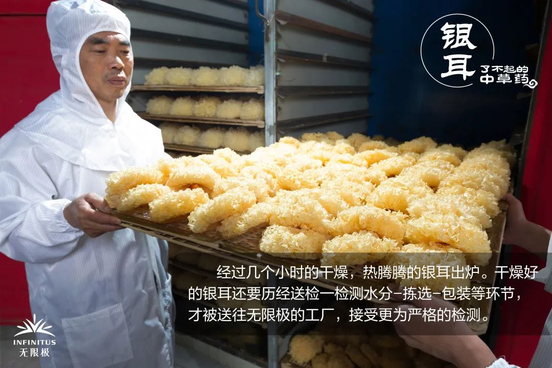 这些用“笨方法”种植、加工出来的银耳,将作为无限极旗下多款产品的原材料之一,为调养免疫力、改善人们的健康状况出一份力。