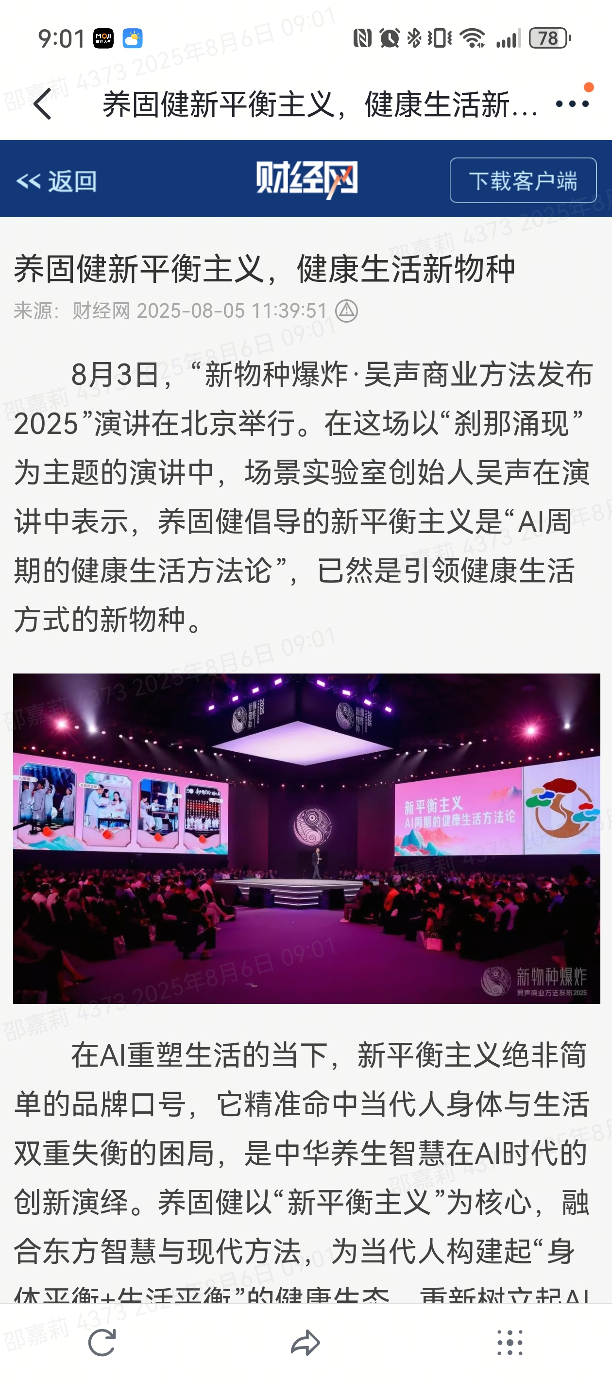 如吴声演讲中强调的“意义重建”——AI场景革命正在让商业开启哲学生活方式周期的,关键是在每个具体场景重建意义坐标。养固健的品牌理念及主张,不仅是AI时代中华养生文化的一次场景革命,它更是一次对商业底层逻辑与个体存在的意义重建,悄然定义何为“新平衡”,何为身体平衡,何为生活平衡。