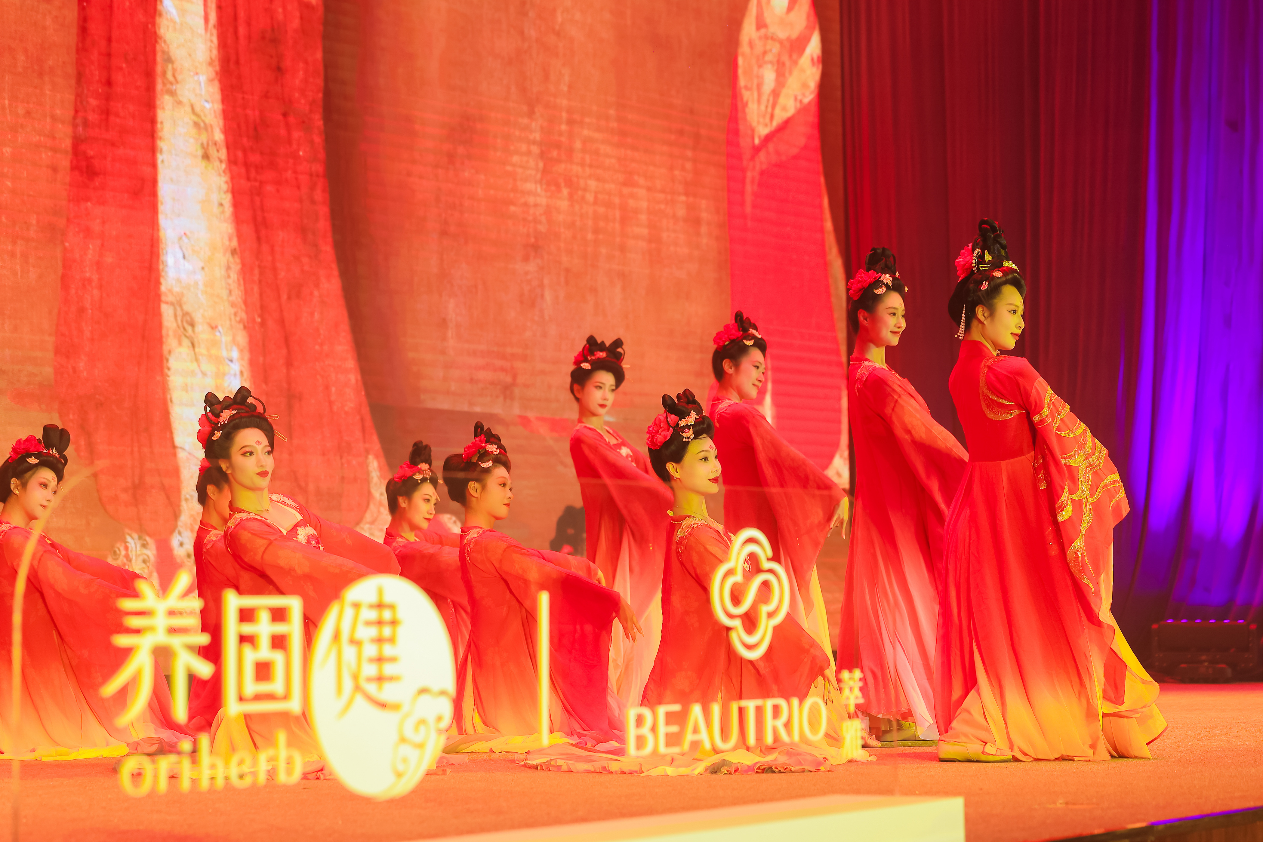 五位养固健中华养生顾问登台走秀。她们年龄不同,气质各异,却都步伐从容、神采奕奕,用真实的状态诠释着“美丽与时光共生”的优雅。